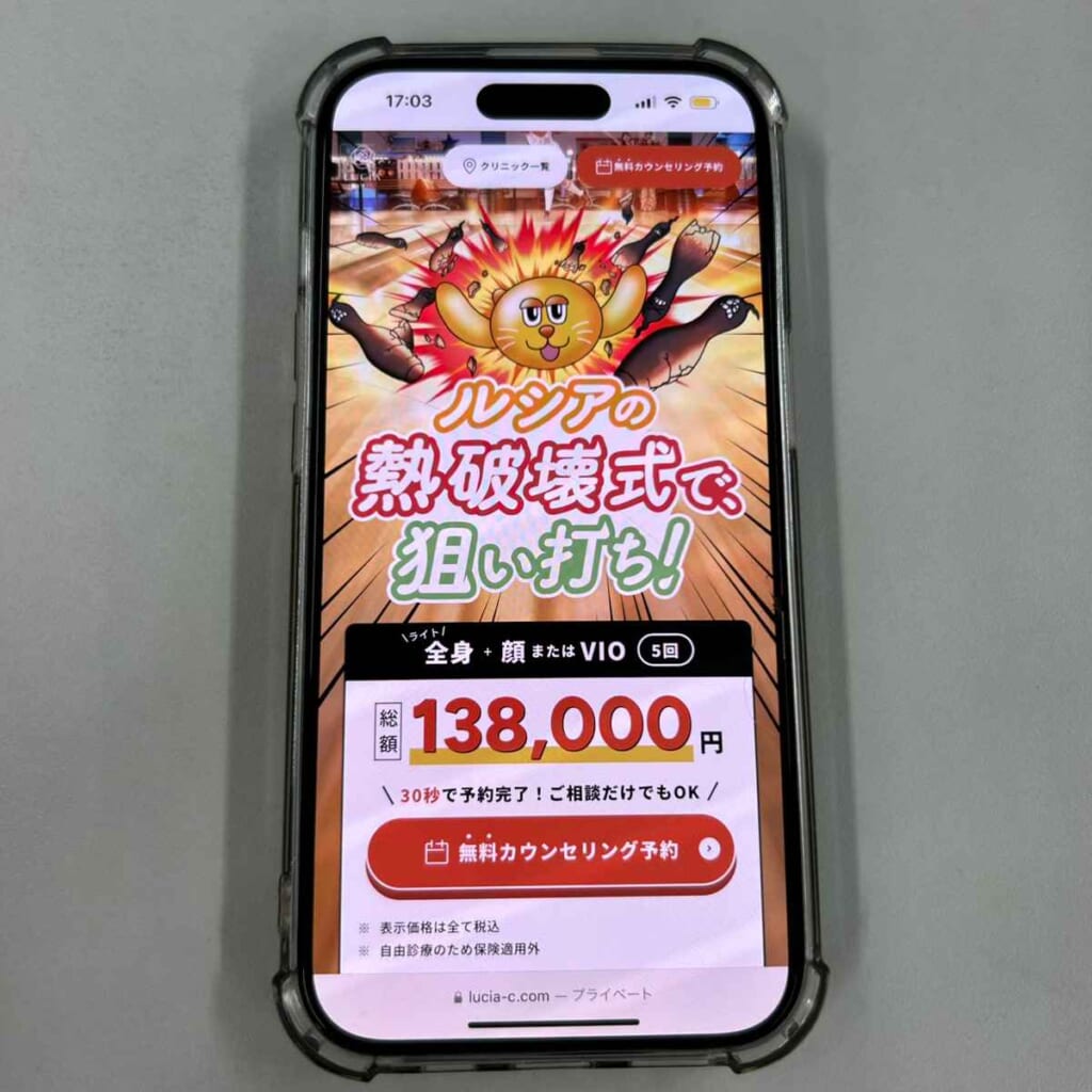 ルシアクリニック埼玉大宮院はVIO含む全身脱毛が138,000円